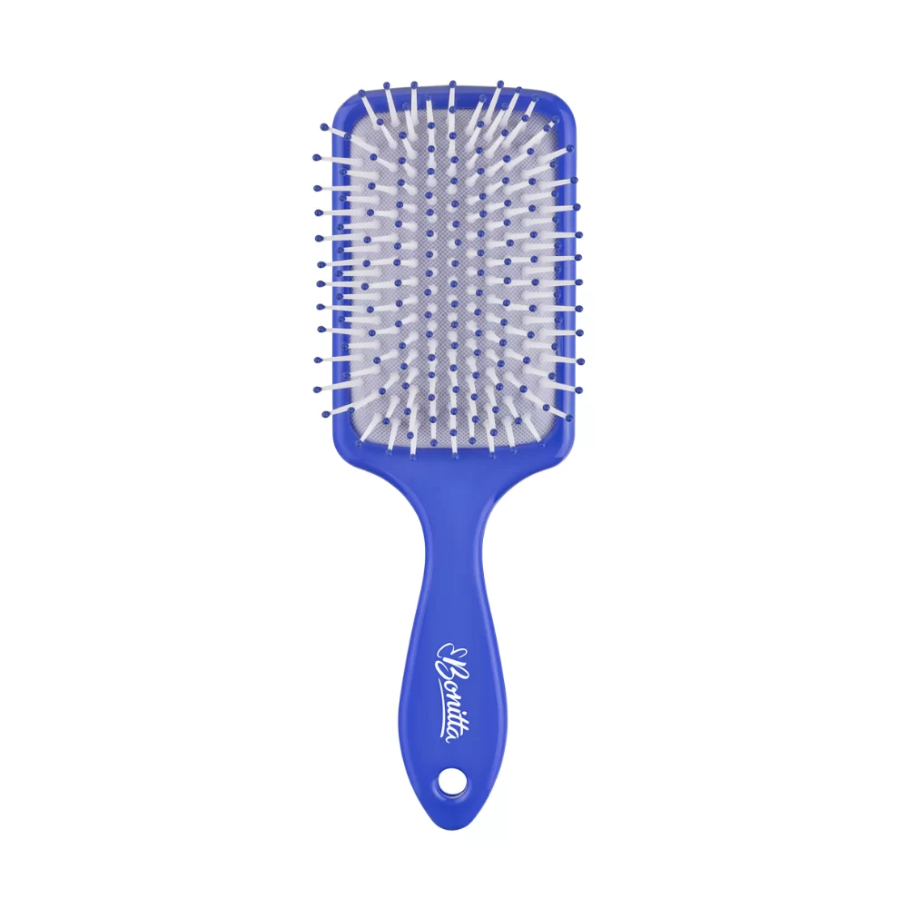 Escova raquete profissional projetada para desembaraçar, alisar e finalizar cabelos com precisão. Suas cerdas flexíveis com pontas arredondadas massageiam o couro cabeludo, proporcionando conforto ao cliente. Ideal para uso em barbearias e salões de beleza, garantindo eficiência e praticidade no dia a dia.