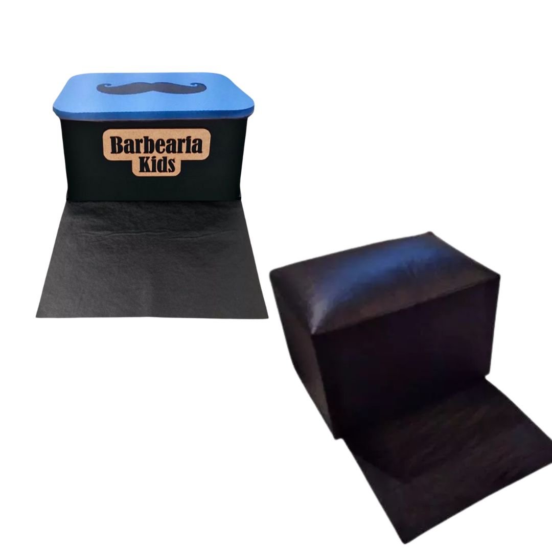 Puff assento infantil desenvolvido para proporcionar segurança e conforto durante cortes de cabelo em crianças. Com design ergonômico e altura adequada, facilita o trabalho do barbeiro e garante uma experiência tranquila para os pequenos clientes. Ideal para uso em barbearias e salões de beleza.