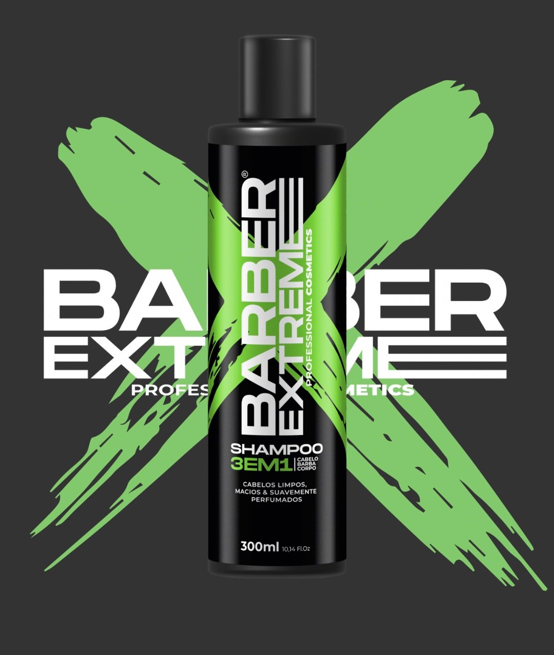 O Shampoo 3 em 1 Barber Extreme foi desenvolvido para facilitar o dia a dia do homem moderno. Sua fórmula versátil permite limpar profundamente cabelo, barba e corpo, removendo impurezas sem ressecar. Proporciona sensação de frescor, hidratação equilibrada e um aroma marcante. Ideal para uso diário em barbearias e rotina pessoal.