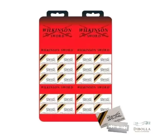 Lâmina Para Babear Aço Wilkinson – 1 Cartela Lâmina para Barbear Wilkinson Sword é a lâmina tradicional da Gillette. A Lâmina para Barbear Wilkinson Sword é uma lâmina usada em aparelhos de barbear clássicos ou navalhas profissionais de aço inoxidável e fácil de trocar. Benefícios: – Duplo fio inox; – Lâmina suave e eficaz. Modo de usar: Use Lâminas de aço inoxidável para barbeação, de preferência utilizá-las em um Aparelho de Barbear Clássico Feito em Aço Inox. Lâminas de Aço Inoxidável 1 Cartela de 20 caixinha com 3 unidades cada, Total de 60 unidades